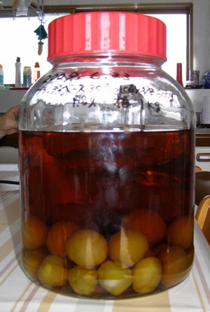 昨日で365日連日更新を達成しました。ブログを始めた当初、まだ現職だったために途中でアップできない日がありました。以来、1年の節目、思えばよく続いたものとわれながら感心しています。飽きもせず訪問いただいた皆様方のおかげで、毎日更新の励みがついたことをお礼申し上げます。「毎日が日曜日」の過ごし方も分かってきた今、ブログのほうも、毎日更新にこだわらず、内容を吟味して、皆様に飽きられないようにしようと考えています。sobajin は、自分の住むこの町が大好きです。そして、いつもわが町のこと発信していきたいと思っています。これからもよろしくお願いします。梅酒の梅の実でジャムを作るの巻 我が家では、毎年梅酒を仕込んでいます。5から10年物まで年代ものもあるんです。先日、仕込んだ瓶をチェックしたら、まだ梅の実を取り出していないビンが3本ほど出てきました。昨年仕込んだ瓶はともかく、4,5年たったものもありました。梅の実は、長く入れておくと種から「苦味」が出ると聞いたことがありますが、味見したところ大丈夫のようでした。それに、実自体がしなびていないのです。実を取り出し、sobajin のチャレンジ精神が鎌首をもたげました。「この実で何かできないだろうか ?」「ジャムはできないだろうか」思い立ったら即実践が sobajin の主義。早速加工に取り掛かりました。果肉をぺティナイフでそぎ取り、フードプロセッサーで微塵にしました。そのあと、白砂糖を入れ火にかけ煮詰めました。分量は目分量、ころあいを見て味見です。 アルコール分は飛び、ママレードのような酸味が残るジャムが出来上がりました。 皆さんは、取り出した梅の実をどうしていますか。結構いけますよ、お試しあれ。そうそう、実を取り出したあとの液体は必ずいただきましょう。(笑)バニラアイスに少量かけると、これまた大人の味のアイスになりますよ。