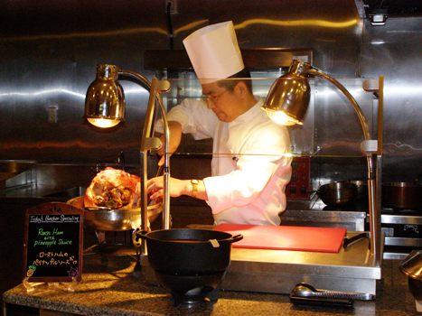 夏冬2シーズン制で運営している地中海クラブのバカンス村「クラブメッドサホロ」は、4月7日のクローズを前に、残り少ないシーズンを楽しむスキーヤーたちで賑わっています。クラブメッドは、滞在中の食事代やワインビールなどの飲み物、リフト代などが料金にすべて含まれています。そして、そのほかに、夕食後にシアターショーなどもことができます。さらに、食事も曜日ごとに変わったメニューが用意されていることです。先週のメインディシュを紹介しましょう。 シェフ特製のローストラム シェフ特製の鹿肉のソテー サーモンのカルパッチョ レストランで世界のお料理を楽しんでください。私たちがお迎えします。(レストランスタッフ)クラブメッドサホロ