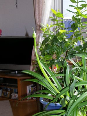0度以下では育たない「アガパンサス(紫君子蘭)」が蕾を持っています。冬の間咲き続けたハイビスカスもそろそろ終りになってきた今、アガパンサスや普通の君子蘭の開花が楽しみです。 刺し芽をしたカランコエも赤い花が咲きはじめました。今朝は、10センチほどの降雪と、今細かな雪がまっています。でも、春は間違いなく近づいているようです。