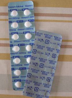 365アップを達成し、しばし充電中のsobajin を驚かすニュースがありました。昨日夕刊に載った記事で、ジェネリック医薬品メーカー大手の大洋薬品が、薬剤の調合ミスのまま製造した治療薬が、そのまま全国出荷販売され、出荷分の16パーセントしか回収されていなかったことが判明したという記事。実は、この薬「ガスポートD錠20mg」という胃酸をコントロールする薬です。sobajin が十数年前胃潰瘍を患い、全治後に予防のため毎日服薬しているのです。新聞によると、昨年4月から9月に製造、全国に出荷された、1箱100錠入り28,000箱だそうで、取り違えた薬剤には「毒劇物成分はなく健康に影響はない」と工場のある岐阜県が発表しました。毒劇成分が含まれていたら、いまごろ sobajin も大変なことになっていたと思うとぞっとしています。すぐ調剤薬局に聞いたのですが、何の連絡も入っていないとのこと、昨年9月に判明した薬剤取り違え、しっかりしてほしいと思うのは sobajin だけではないでしょう。報道のあった錠剤はこの錠剤です。