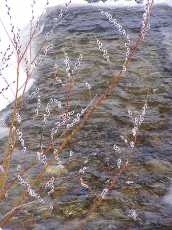 先日の爆弾低気圧、降雪50センチの上暴風との予報に驚かされたのですが、雪も10センチ弱、風もほとんど吹きませんでした。今日の最高気温は6度の予報、雪解けも進みそうです。そんなわけで小さな春探しに行ってきました。前から目をつけていたネコヤナギ、やはり芽吹きが増えていました。市街地につながる小川のほとりでは、ふわふわの綿毛に包まれたネコヤナギが芽吹き、せせらぎの音とともに春の訪れを教えてくれています。 春の名残り雪や、雪解けを繰り返しながら北国にも春が訪れますが、これから日に日に温かくなっていくのでしょう。春はすぐそこまで来ています。