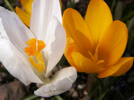 庭のクロッカスが咲いています。先日の雪のとき蕾を見せていたのですが、雪が消えて3色の花を見せてくれています。紫、白、黄色の3色です。福寿草と同じ時期ですね。このあと水仙、チューリップ、そしてムスカリ、つつじが咲いて桜にバトンタッチでしょう。