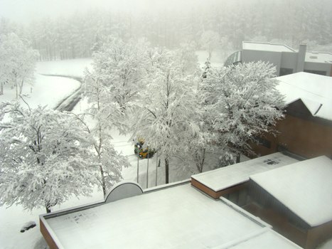 昨日の雨が夕方から雪に変り、今朝までに15センチの降雪となりました。sobajin は、クラブメットサホロの冬の村最後の夜に、sobajin 妻・二男と一緒にお泊りに行っていました。今朝起きてみると、外は一面の銀世界でした。でも、春の雪の命は短くて、夕方までには融けてしまうでしょう。 クラブメッドサホロの冬の村、そしてサホロリゾートスキー場も今日でクローズです。夏の村は、6月21日オープンになります。