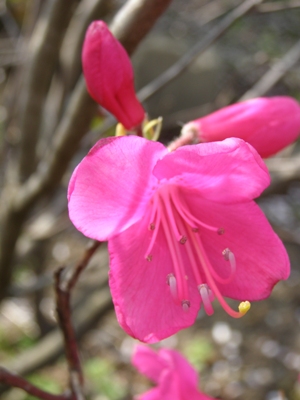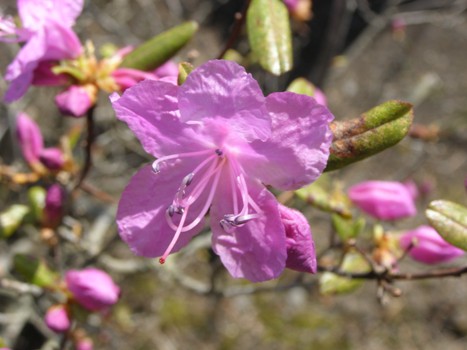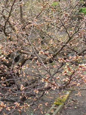 エゾムラサキツツジは、桜より先に開花します。暖かい日が数日続くと満開となり、キタコブシとともに北国への春の訪れを知らせてくれます。 我が家の庭の「チシマザクラ」の今日の様子。開花までもう少しです。 花開いたらお庭で花見です。えっ誰 ? 毎日花見だろーって。