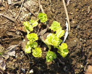 昨日の最高気温は17.2度でした。子どもたちも帰省して、今年初めて庭先でのバーベキューを楽しみました。塀の下の陽だまりでは、ようやくスイセンが一輪花開きました。雪が融けた庭では、オダマキの芽が出ています。芽のときから花の色が分かります。 球根ベゴニアも鉢に植え付けして、ビニールトンネルに入っています。もうすぐ花一杯の庭再来になりそうです。ようやく春が来たのかなー。