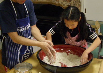 昨年秋にも手打ち蕎麦指導に行っていたのですが、今回は、教育大学の学生さんが「学校支援ボランティア」で来校中とのことで、地域の名物蕎麦打ちを体験してもらおうとsobajinにも声がかかりました。体験は、蕎麦打ちは初めてという大学生6人と、小学4年・6年の児童二人も参加して体験教室を開きました。児童たちは、昨年秋にも体験していることから、一日の長 ? を感じさせます。 大学生たちは、それでも楽しみながら蕎麦打ちにチャレンジしていましたが、できばえは初めてにしては上々でした。 昨年1月13日にこのブログを開設して今日でちょうど500日になりました。アクセス数も、まもなく44444になります。Just賞を何か考えたいと思います。明日あたりでしょうか……。