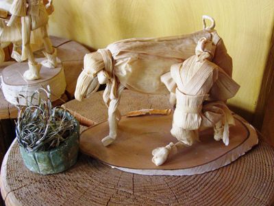 昨日ご紹介したわが町のチーズ工房「共働学舎」、そこの交流施設「ミンタル」チーズの直売のほか、喫茶もあって手作りの味が評判です。また、利用者たちが手作りした作品も即売されています。今日は、展示されている「とうもろこし人形」をご紹介します。とうもろこし人形は、夏の間に乾燥させたとうもろこしの皮を使っていろいろな人形に仕上げています。展示されていたのは、チーズの製造過程を表現した人形でした。チーズを作るには牛さんからお乳を搾らなくてはなりません。 チーズの元を作ります。 カマンベールチーズに仕上げます。 これは、「カチョカバロ」を作っているところですね。 「ミンタル」は夏のシーズン無休で開店しています。バターつくりの体験もできます。軽食もやってますのでぜひ足を運んでみてください。共働学舎ミンタル