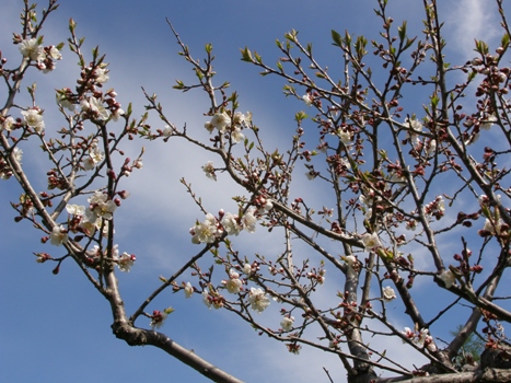 十勝晴れの晴天に誘われ、狩勝高原の梅園に行ってきました。日本最東端の梅園で、ようやく花が咲き始めました。まだ一部の木ですが、今週末あたりは見頃となるでしょう。サホロリゾートスキー場のある佐幌岳の麓、狩勝高原には1800本の豊後梅が植えられています。 例年だと、散り始めている時期ですが、今年はやはり寒いようで、今年は実がつくのか心配です。帰り道、梅園の中で「エゾノリュウキンカ(ヤチブキ)」を見つけました。 自宅の庭では、さくらんぼの花が満開でした。千葉の妹のところではもう食べているというのに・・・、こちらも実がつくのか心配です。