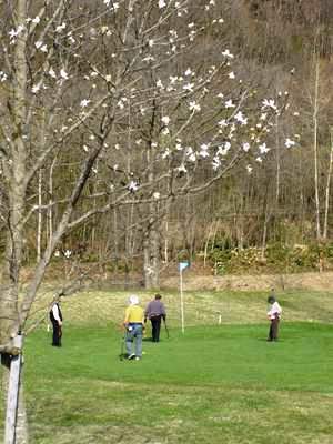 ようやく桜が満開になりました。新得神社山のほうは有名なんですが、サホロリバーサイドパークゴルフ場のコースにも立派なエゾヤマザクラが咲いています。パークゴルフ場では、愛好者らが桜の花の元プレーを楽しんでいます。 町内の桜は今週末あたりが見ごろで、29日頃からは狩勝峠3合目付近の狩勝高原園地で、桜と豊後梅の花が楽しめます。