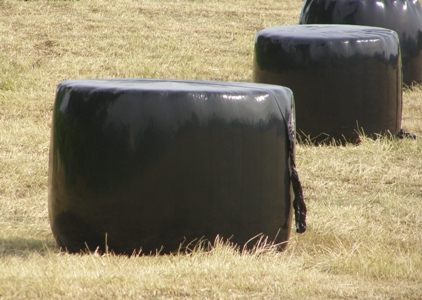 北海道は、ここ数日真夏日・猛暑日を迎えておりました。春先の冷夏の予想は、早々と訂正されました。とにかく暑かったです。この暑さで、農家さんは作物の生育遅れが挽回できたとか。冬の間牛さんに食べさせる飼料「牧草」の収穫も最盛期です。この好天がよい乾燥牧草を作り上げるのです。 昔は、サイロにつめてサイレージを作り冬に備えるのですが、いまは、サイロよりこのような「ロール仕立て」や「バンカーサイロ」に保存されます。このようにビニールでラッピングされた牧草ロールは、この中で乳酸醗酵されて栄養価の高い飼料になります。 この牧草ロール一個700キログラムほどあるのです。こちらでは、冬の間生の牧草は取れないので、牛さんたちにこのように夏に収穫した餌を与えているのです。昔、乳酸醗酵させるために多額のお金をかけて建設されたサイロも、いまは無用の長物になりつつあります。農政って、なんなんでしょうね。