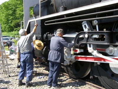 鉄道の町として発展してきたわが町には、鉄道関係者が多く住んでいます。とりわけ、機関区に所属していた機関士、機関助士の方、内勤の方々が退職後住んでおられます。その機関区OBの方々が「機友会」という70名ほどの親睦組織を作り、毎年一回この時期に静態保存している蒸気機関車「D5195機」の化粧直しを行っています。全国一暑い日となった昨日、「D5195機」の前に集まった会員の皆さんは、現職当時の乗務服を身にまとう人もいて、「釜の前の暑さはこんなもんじゃない」と、我が子を愛しむように一年間の汚れを落とし磨き上げていました。 「D5195機」は、旧国鉄時代の狩勝線 新得=落合間で活躍した蒸気機関車です。退役後余生をわが町でで過ごしています。この日の作業では「D5195機」に乗務した人たちもいて、当時を思い出しながら会話も弾んでいました。「D5195機」の履歴もアップしておきます。