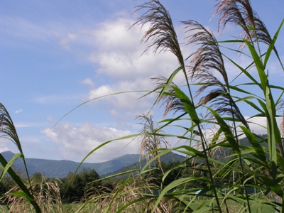 いつにない酷暑が続く今年の夏、皆様如何お過ごしですか。暑さに続いて台風が来ていますが、皆様のところ被害はありませんか。sobajin の街、未明に雨が降り、明け方には17度Cまで気温が下がりました。街をそよぐ風にも何かしら秋が感じられます。今日からは、郷社の秋まつり、明日は神輿渡御が行われます。数年前までは、若者や、大厄の人たちによって担がれて街中を練り歩いていたのですが、人手不足から台車に乗っての渡御となりました。寂しいです。パークゴルフの帰り道、小さな秋を探してきました。今年のススキは出穂が遅かったようです。これも気温のせいなのでしょうか。風にそよぐ様はまさしく秋到来です。 秋を代表する野の花と言えば「萩」を思い出します。ススキの近くに咲き始めていました。 そうそう、パークゴルフ場の中の池には、因幡の白兎に送ってあげたいものがありました。そうです「がまの穂」です。今年も沢山できています。 とにかく暑い日が続く今年の夏、どうなっているのでしょう。これも温暖化を示す現象なんでしょうか。北海道の特産「ジャガイモ」も実の中に空洞ができる異常が現れているそうです。気温が低いほうが品質の良いおいもが取れるのだそうです。北海道米が年々美味しくなってきており、今にコシヒカリが北海道でとれるようになり、最高のお米になるのではとも言われています。近々萌和農場へジャガイモやかぼちゃの情報を仕入れにいってきます。
