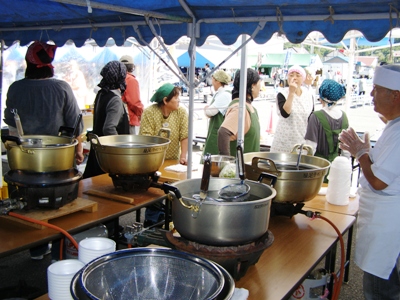 第9回しんとく新そば祭りは、21000人ものお客様を迎え盛会裏に終りました。最初から出店している sobajin たちの「屈足手打ちそばの会」は、1,650食を提供し、終了1時間前に完売してしまいました。お越しいただいた皆様本当にありがとうございました。仲間たちの満足感一杯の顔、顔、顔を見てください。ところで、前日から「屈足手打ちそばの会」に NHK のカメラが密着して取材していました。 と、いうのは「屈足手打ちそばの会」では、毎年新蕎麦の時期に老人ホームや療護施設、授産施設を訪問して、新蕎麦で利用者の皆さんと交流してきたのですが、この活動状況を全道放送していただけるとのことです。10月4日午前11時30分からNHK 総合の番組「北カフェ」で「屈足手打ちそばの会」の活動を紹介してくれるのですが、当日は、会長さんと sobajin が札幌放送局のスタジオヘ出向きインタビューと蕎麦打ちの実演をすることになりました。時間があれば見てくださいね。