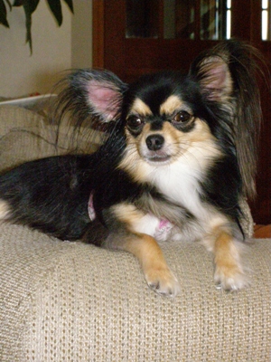 夜半の雨も上がり、今朝は少し風の強い朝です。低気圧が抜け一気に秋に突入なのでしょう。さて、お待たせしました。孫姫が飼っているチワワの「ココア」、覚えていてくれたでしょうか。久しぶりに画像に収めました。 今年11月末で満3歳になるココアですが、最近では体重も3キロと少し太り目とか、ダイエットを勧められているようです。そして、日中ココアのは、ソファーのここにいることが多く、ここから外の様子をいつも見ているのだそうです。孫姫の学校からの帰宅は、気配でわかるらしくいつの間にか定位置になったようです。 外へ出ての画像がないのでこの次は外シーンを撮ってきます。