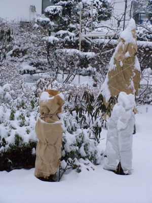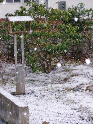 沿海州にある低気圧が、発達しながら北海道を通過する見込みで、その影響から里にも雪が降り始めました。去る10月18日町から見える日高山脈に初冠雪がありましたが、山が3度白くなると里にも雪が来る、というのが sobajin の経験則でした。ところが、今年は最初の雪が消えるどころか、消えないうちに里にも来てしまいました。 11月は寒く、12月に入って暖冬傾向が続くというのが長期予報のようですが、どうなることでしょう。ちなみに、昨日植木の冬囲いの準備をしました。後は筵を巻くだけになっているのですが……。