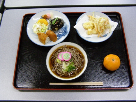 屈足手打ちそばの会が毎年この時期に担当する昼食会、町の社会福祉協議会が主催し、いろいろなボランティア団体の協力で開かれています。5センチほどの積雪となった28日、屈足地区の方を対象に屈足総合会館で行いました。保育園のお遊戯会と重なった今年の昼食会はいつもより少ない13人のお年寄りが参加しました。お蕎麦だけではなく、ユリ根やごぼうの天ぷら、お稲荷さん、サラダなどごらんのメニューを用意しました。これらも会員が手分けして作ります。 もちろん自慢のお蕎麦は、お代わりもできるよう用意し、食事開始に備えます。 蕎麦を茹で、温めてつゆをかけ、ナルトとネギを散らします。 ほとんどの方がお代わりをして新蕎麦の味を楽しみました。とりあえず年内の新蕎麦慰問は一段落しました。