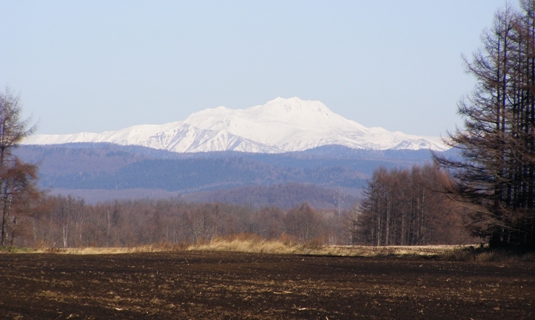 久しぶりに郊外を走った。先日の雨で畑には雪はなかったのですが、真っ白な雪に覆われた十勝岳連峰やトムラウシ山を望むことができました。夏山登山史上最悪の遭難事故が起きたトムラウシ山(2,141m)、そして、十勝岳連峰のオプタテシケ山(2012.7m)、美瑛岳(2052.3m)、美瑛富士(1,888m)なども真っ白で、すでに厳冬期のたたずまいを見せていました。 トムラウシ山(2,141m) オプタテシケ山(2012.7m) 中央が美瑛岳(2052.3m)、その右が美瑛富士(1,888m)十勝岳は見えない場所でしたが、雲ひとつない青空に白い山の姿が浮かんでいました。もうすぐ里も雪で白く覆われるのでしょう。