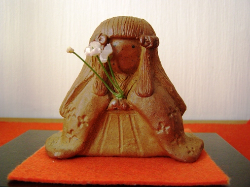 わが町の陶芸センターが主催する「狩勝窯」作品は「しんとく焼」といわれています。 素朴な色合いのお人形、如何ですか。だんだん桃の節句が近づいてきますね。