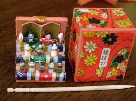 こんな小さいの、誰が作るのでしょう。ほんとに手先の器用な方ですね。とにかく小さいのです。爪楊枝と比べてみてください。 これは京都駅のお店で買い求めたものだと思います。京都らしいお土産を探しているうちに見つけ、即購入、sobajin 妻へのお土産になりました。(私たちは安上がり夫婦なんです。)