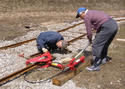 狩勝高原旧新内駅構内を利用して保線用トロッコの体験乗車を行っているNPO法人「旧狩勝線を楽しむ会」では、スタッフが冬の間に傷んだ線路の補修を行い、4/29日のオープンに備えていました。 「狩勝高原エコトロッコ鉄道」は、旧狩勝線新内駅に静態保存されている96型SLやブルトレ寝台車のそばを周回する体験施設で、今年は周回路も倍に伸ばしたとのことで、800メートル以上の体験乗車ができます。また、本物よりは少し小さめですが手製の信号機も増設され楽しみも増えたようです。「旧狩勝線ミュージアム」がある場所は、北海道狩勝峠十勝側の3合目。今はこの峠を越える鉄道は新しい線路に切り替わっていますが、昭和41年までは国道38号線にほぼ沿って走る旧線路がありました。それが旧狩勝線です。旧狩勝線唯一の途中駅だった新内駅跡に保存されている9600形蒸気機関車(59672)と東京から昭和53年にやってきた国鉄特急寝台客車(20系)3両が旧ホームに並んでいます。当時の新内駅舎はすでに無いですが、SLホテル時代の管理棟をカフェに改造した“シーニックカフェ新内駅”があります。「旧狩勝線ミュージアム」は、これら車両展示のほか、車内では旧狩勝線の資料展示や、スタッフ手作りの「狩勝信号場・狩勝隧道」の1/150ジオラマも登場、Nゲージの車両も走っています。そして、なんといっても見ものは国内で唯一、ここにしか残っていない寝台車で、ルーメットと呼ばれた一人用個室付きのA寝台(1960年日立製作所ナロネ22 153)は、ブルトレの往時をしのばせる貴重なもので、きっと懐かしさを覚えることと思います。 狩勝高原エコトロッコ体験は、来る4月29日オープンです。運営主体は、NPO法人「旧狩勝線を楽しむ会」ですが、ホームページアドレスを下記に掲載しておきます。体験乗車(大人600円・子ども幼児300円)や入館料(小学生以上200円)がかかります。同NPOは、いろいろな事業に取り組んでいます。HPなど参考にされてぜひご参加ください。また、HPには駅長さんのブログやスタッフ自慢の画像なども紹介されています。 NPO法人「旧狩勝線を楽しむ会」HPへ