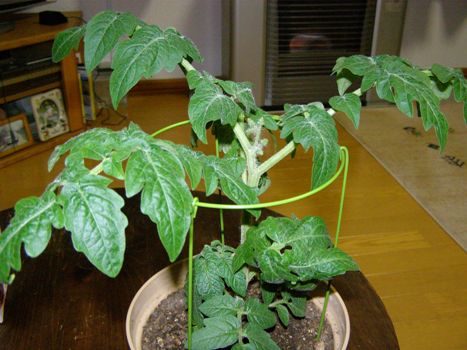 先日蕎麦打ち仲間からいただいたトマトの苗、観賞用のトマトと言われていたのです。鉢に植え替え、室内に置いていたところ順調に成長しているらしく、よく見ると蕾ができてきました。花茎に生えている綿毛も何か春を感じさせてくれます。 「観賞用のトマト」って初めてなので、どんな実になるのか楽しみです。いただいたとき、「観賞用といっても、食べられるのではないかなー」と話していたのです。結実して、味見できるようになったら報告します。