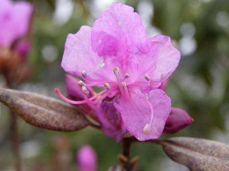 庭の花木で一番最初に咲く花「エゾムラサキツツジ」が咲き始めました。「今年は遅いねー」などと話していたのですが、ようやく開花です。「エゾムラサキツツジ」f<sobajin の町の花でもあるのです。たぶん一軒に1本はあるはずです。sobajin 現職のころ転入された方、赤ちゃんが生まれた方、結婚された方などに町から記念のプレゼントとしてお届けしていました。 エゾムラサキツツジ (蝦夷紫躑躅) ツツジ科山地の明るい林内や岩場に生える半常緑の低木。北海道の東部や北部に多く分布する。下から多数の幹が分かれ出て、長楕円形で光沢のある葉が枝の先に集まって互生する。紅紫色の花が枝先に数個かたまってつく。葉が開く前に開花する。北海道にのみ自生するツツジで、特に道東の方で多いようだ。数あるツツジの仲間でも最も最初に開花し、山野に春を告げる花の1つである。北海道の179市町村が制定している「まちの花」で一番多いのはツツジで、70市町村(33%)を数える。そのうち、網走市や美幌町といった道東の自治体をはじめとした18市町村がこのエゾムラサキツツジをまちの花としている。留辺蕊町の温根湯にあるエゾムラサキツツジの群落は天然記念物にも指定され、観光名所になっている。 (出典 http://homepage2.nifty.com/hanapapa/ezomurasakitsutsuji.htm)