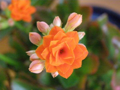 外の寒さをよそに、カランコエが咲き始めました。 オレンジ色の花です。昨年夏珍しいので買い求めました。他に黄色や赤のカランコエも蕾を大きくして来ています。 室内では、セントポーリアが季節を問わず咲いてくれます。また、観葉植物も数鉢ありますが、画像にしても面白くないのでままこ扱いしてます(笑)