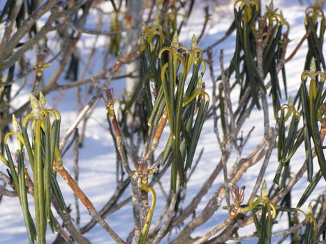 さすがに寒です。寒い日が続いています。今朝の当地の最低気温は氷点下14.8度。物置の入り口の戸についた氷紋(?)です。寒に入って、当地を含めて十勝地方はまさに天然冷凍庫の状態です。日本一寒い町といわれている十勝管内陸別町、今朝の最低気温は氷点下25.7度。連日氷点下25度以下が続いているようです。N自動車メーカーのテストコースがある陸別町では、この寒さを利用して開発車両の寒冷地テストが行われています。sobajin の家の庭では、しゃくなげの葉が縮こまって寒さに耐えています。 21日は大寒、そして来月3日は節分。暖かくなって欲しいと心待ちしています。寒さ厳しき折、風邪など召さぬようご自愛を!!