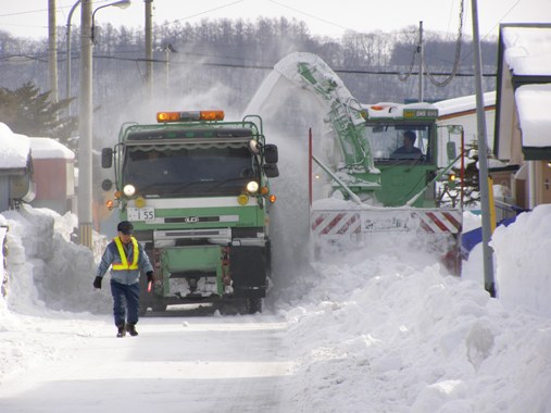 今日家の前の通りの排雪が行われました。少ない少ないと思っていた今年の雪でしたが、先日の2回の降雪が40センチ近くあり、昨年暮れからの積雪で1メートルにもなりました。となると道幅は狭くなり、歩道もなくなります。 シーズン中に何度も危険防止のために町では道路の排雪をします。都会では、家の前の通りなどは自分または町会で業者を頼んで行っている話を良く聞きますが、こちらでは無縁な話。ちいさな町だからこそ痒いところへ手の届く行政サービスができるのでしょう。 町が所有する除雪車両のほかに、民間のダンプカーを借り上げての作業、ロータリー者は20トンダンプにものの1・2分で雪を積み込んでしまいます。 当地では、3月お彼岸の頃にドカ雪が来ることが多いのですが、せっかくきれいにしてくれたのでこのまま春が来ることを祈るsobajin です。