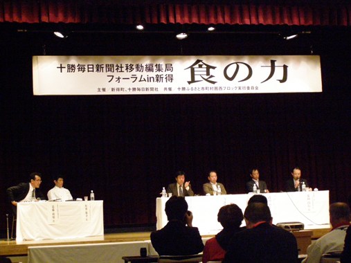 「食の力」と題して開かれたフォーラムに行ってきました。北海道らしい食作り名人・北海道フードマイスターの垣實敬介氏の講演と、「地場産品と町おこし」というパネルディスカッションでした。 垣實シェフの講演では、地域の活性化に地場産品をいかに活用していくかをパワーポイントを使いながらお話してくれました。パネルディスカッションでは、チーズの共働学舎から宮嶋氏、新得地鶏の武田代表理事、老舗蕎麦屋の今井店主、サホロリゾート安田総支配人がパネラーを勤めていました。パネラーの皆さんが等しく話しておられたのは、それぞれがいかに連携するかということではなかったのではないでしょうか。わが町には、資源・素材がたくさんあります。それを生かしきっていないというのが sobajin 今なお感じているのですが、今日のフォーラムでも見つけることはできませんでした。ただ、sobajin は、2004年現職当時に地域の活性化について、地域産業の「6次化」を提唱していました。2009年代になって農水省が「6次産業化」の施策を出し始め、今は地域おこしの最先端が6次産業化であるとまでいわれています。今日のフォーラムでは、時間の制限からそこまでの発言はありませんでしたが、「地域活性化は6次産業化にある」ことをいま真剣に考えるときではないでしょうか。今日の感想でした。