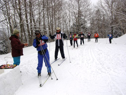 第16回目を迎えたこの大会、毎年シーズン最後の大会として愛好者に人気の大会です。今日は、80人余りの参加で午前10時30分トムラウシ温泉園地をスタート、温泉周辺の林道折り返しコースで行われました。 6キロコースは、望岳台展望台折り返し、10キロはトムラウシ山短縮登山口入り口折り返しでした。sobajin は、晴れていると目の前にトムラウシ山が迫る「望岳台」折り返し点に、「AED」と救急資材を持って待機しました。また、折り返し点では水とチョコなどの甘味料の補給が行われました。 あいにくトムラウシ山は見ることはできませんでしたが、参加者らはシーズン最後の歩くスキーを楽しんでいました。