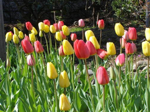 ただいまの気温7.9度C、今日の予想最高気温は19度C。今日こそ開花してくれるのでしょうか。昨日は、第62回新得神社山桜まつりが開かれました。sobajin の家からも見える神社山、ピンクに色づいています。強風が吹く肌寒い一日でしたが、会場ではあちこちでBBQの煙が立ち上っていました。さて、わが家の「豊後梅」先日様子をお知らせしましたが、今朝も開花していません。例年以上に蕾がついているので、開花が楽しみです。 開花といえば、庭のチューリップ昨日午後ようやく開きました。今朝のチューリップです。 ピンクのチューリップは孫姫の大好きなチューリップです。