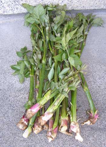 山菜の時期ですねー。皆さん今年になって山菜は何を召し上がれましたか ?sobajin 今年の山菜は、フキノトウから始まって、ギョウジャにんにく・こごみ・フキ・ヨモギ・せり・タラの芽・そして今日はお隣からウドをいただきました。 いただいたウドは、酢味噌合えと穂先を天婦羅にしていただきした。美味しかったですね、写真を取るのを忘れてしまいました、ごめんなさい。 まさに山菜シーズンたけなわです。ウドの処理をしているときこんな方がお見えでした。 エゾハルゼミさんです。ウドの葉の中にいらっしゃいました。そういえばこのニ、三日彼らの声が聞こえてくるようになりました。それにしても「豆まき鳥」とも言われる「カッコウ」の声をまだ聞いていません。いつもなら二十日過ぎには聞いているのですが……。今年の出来秋は大丈夫なのでしょうか。少し心配です。