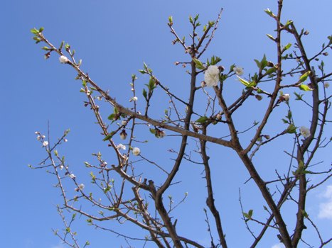 今朝紹介したわが家の庭の「チシマサクラ」、各地で開花とおなじ日に満開のケースがありましたが、夕方で七部咲きぐらいでしょうか。明日は満開でしょう。 そして、この方「豊後梅」さん、今年はたくさん蕾を持っており期待できそうですが、まだ蕾が膨らみだした程度です。 都都逸に「梅は咲いたか、桜はまだかいな…」ってありますが、こちらでは、桜が咲いて梅が咲くのです。今度の日曜13日は「第62回新得神社山桜祭り」が開催されます。また、20日過ぎ頃からは、狩勝高原で、1800本の豊後梅とエゾヤマザクラの古木が花開き、見ごたえのあるスポットになります。春の観光