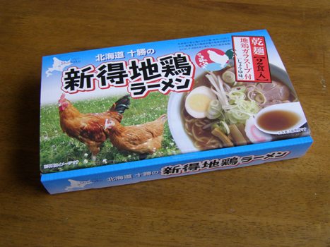 今売り出し中の「新得地鶏」。新得地鶏スープを生かしたラーメンが登場しました。 新得地鶏の力強いコクと旨みをスープに閉じ込めた、もう一度食べたくなるラーメン、しんとくに新しいお土産品の登場です。その新製品が手に入りました。まだ試食していません。試食結果は後ほどアップします。乾麺2食スープ付きのセットですが、「(株)サッポロ麺匠」製の乾麺、スープは「(株)タンゼンテクニカルプロダクト」さんが新得地鶏の旨みとコクを閉じ込め作り上げたスープです。 即席めんというと、麺とスープにレトルトの「メンマ・なると・チャーシュー」などが添えられていますが、このセットは、とにかく「スープと麺のおいしさ」を味わって欲しいと麺・スープのみのセットです。ご家庭で用意していただくのは、せいぜいネギ程度でしょう、美味しさを味わってください。残ったスープで「おじや」を作るのもサイコーと聞きました。 現在、新得町内だけの先行発売ですが、全国展開もまもなくと聞いています。新得地鶏ラーメンこちらから