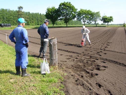 梅雨がないとされる北海道、どっこい「エゾ梅雨」があるんです。オホーツク海に居座る高気圧が強いとお陽様を見ることができない、低温の日が続くなどその影響は顕著です。「リラ冷え」なんて渡辺淳一の小説ではロマンチックに表現されているようですが、ロマンチックなことより農家は大変なんです。ところで、6月初めより計画していたsobajin たちの会の「蕎麦の種まき」、そのエゾ梅雨などに妨げられてやきもきしていました。一昨日から、太陽さんが顔を見せ始め、今日は29.8度まで気温の上昇がありました。仲間の N さんからお借りした畑は