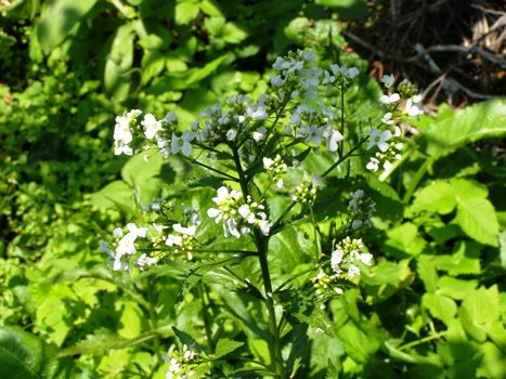 庭の花のネタ切れです。 この花何の花 ? 「山わさび」の花です。珍しいでしょう。こんな画像アップするのは sobajin くらいだからね。春先、根を掘り出して、おろしたてをしょうゆ味で熱いご飯にのせたり、冷奴に添えたりすると止められません。ガツーンと鼻に抜ける刺激は知る人ぞ知る楽しみです。