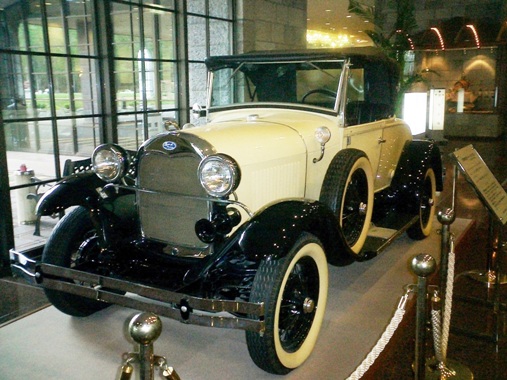 この A 型フォード・キャブリオレは、十勝幕別温泉グランヴィリオホテルのロビーに展示されています。