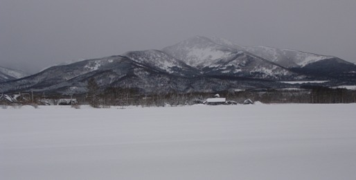 何度かご紹介してきた「オダッシュ山」を望むとそこは墨絵の世界のようにどんよりとしていました。まだ一荒れあるのでしょうか。