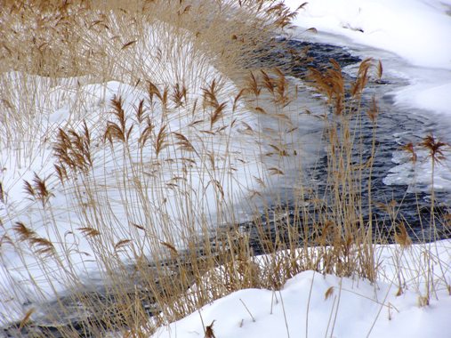 大寒ということで、季節感を求めて近くを歩いてみました。小さな川でしたが、雪や氷の中、川の流れをとってみました。