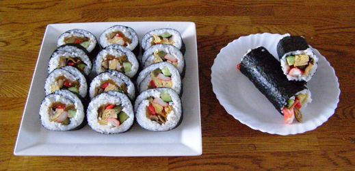 昨夜の巻き寿司、朝食べてまだお昼まで残りそうです。