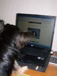 孫姫やココアをかまっていたのですが、ブロ友のめだかちゃんのところのキャンディとPC上で対面させてみました。