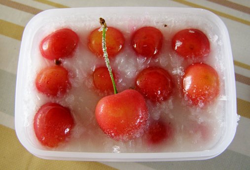 別に張り合うわけではないのですが、我が家の冷凍庫には、カルピス漬けにしたさくらんぼ「佐藤錦」がまだ眠っています。どんなものかご紹介します。
