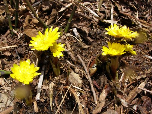sobajin が夏にはいつも通うパークゴルフ場近くの道端、陽だまりに福寿草は花開いていました。