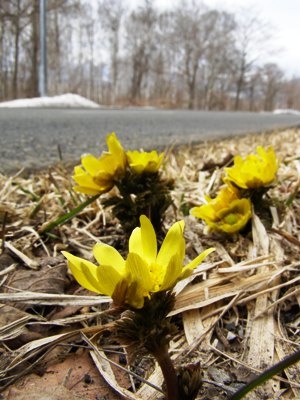 ふきのとうを撮りに行ったのですが、道端に沢山の福寿草が咲いていました。