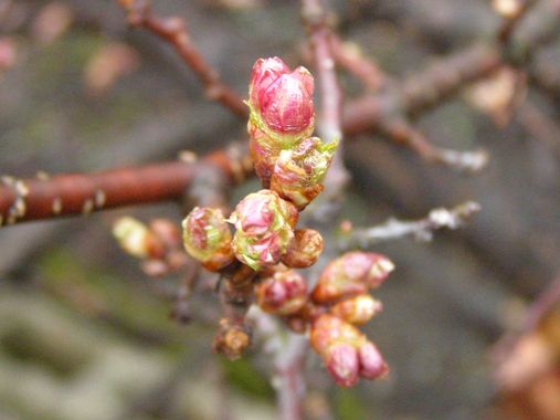 もうかれこれ三十数年を経ている我が家の「チシマザクラ」も、開花の準備をしています。