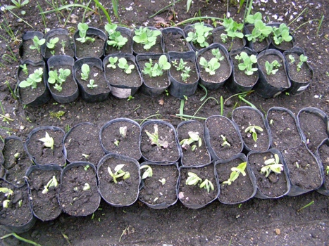 sobajin は、先週待ちきれなくて、エンドウと、インゲンの種をポットに蒔き、ケースをかぶせて保温していました。蒔いた種はご覧の通り発芽し成長しています。天候が回復したら定植しようと思っています。
