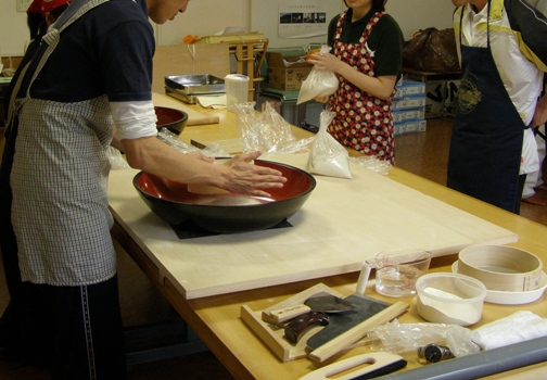 大学生たちは、それでも楽しみながら蕎麦打ちにチャレンジしていましたが、できばえは初めてにしては上々でした。