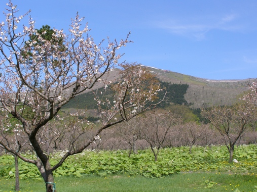 サホロリゾートスキー場のある佐幌岳の麓、狩勝高原には1800本の豊後梅が植えられています。