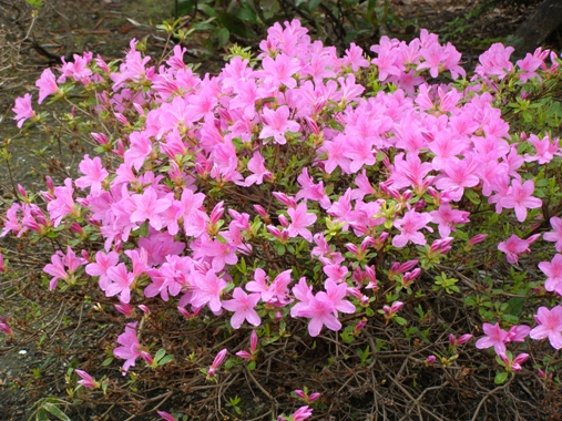 同じ薄紫の花でもこちら「淀川つつじ」の花びらは八重になっています。